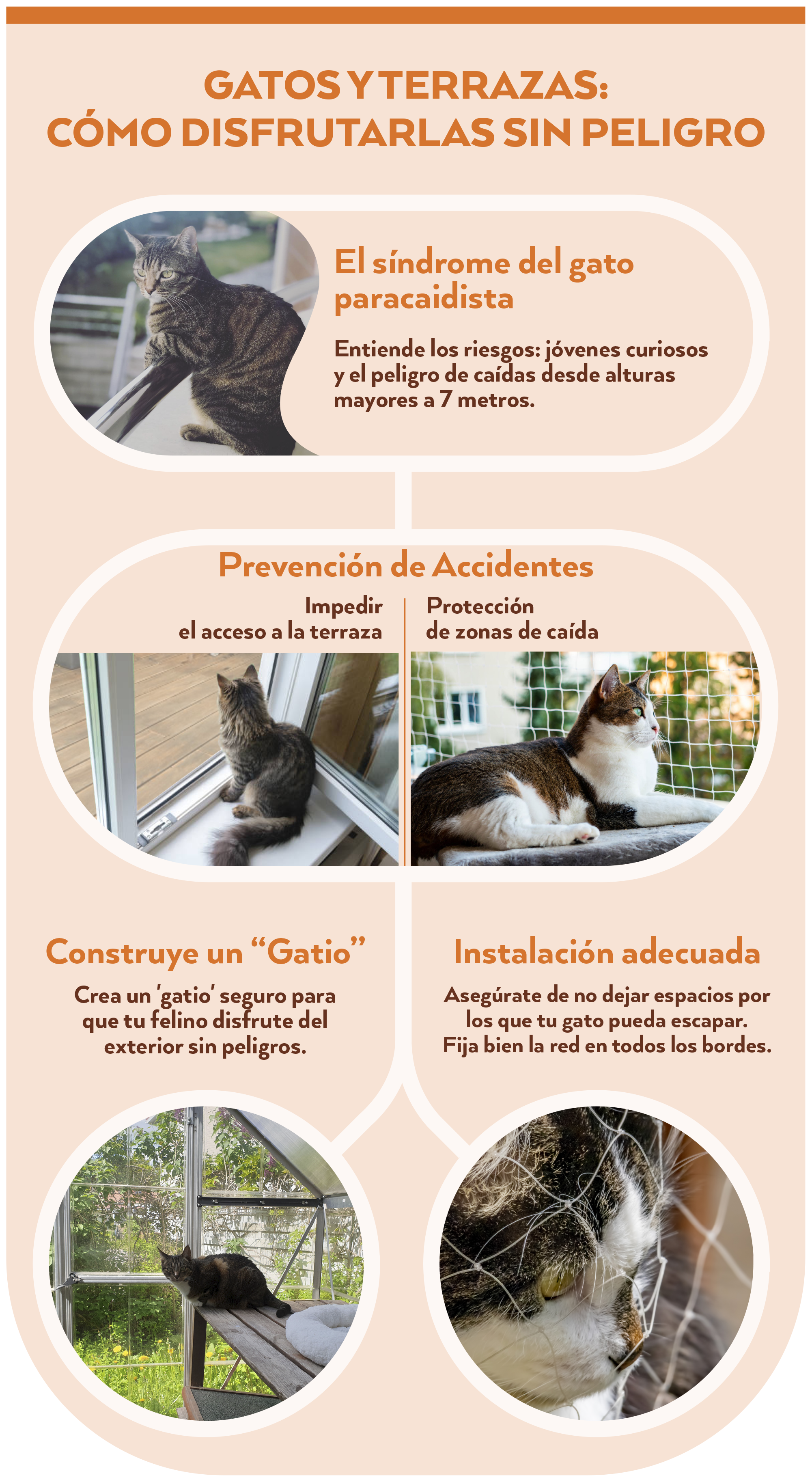 ¿Sufres por la relación gato y terraza abierta? Es una duda habitual, sobre todo durante las primeras semanas, ¿el gato, sin querer, se aventurará a saltar desde la terraza? O si, en caso de estar en el alféizar o subido en la barandilla, ¿podría caer por un mal cálculo? En este post encontrarás las soluciones a estas dudas.